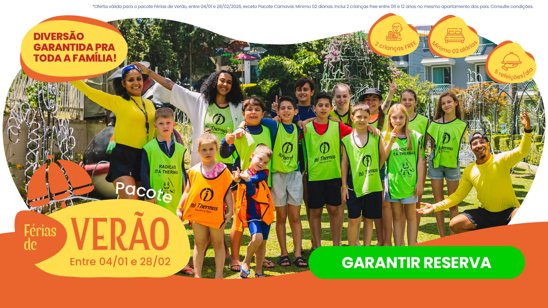 Aproveite um verão inesquecível no Itá Thermas! Até 02 crianças FREE, Jogos de Verão, Noite Tropical, Show de Mágica, Fogueira de Marshmallow e muito mais!